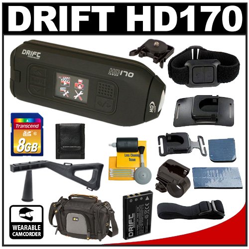 The Drift Innovation HD170 Stealth Digital Action Camcorder features full 1080p HD video that allows users to capture crystal clear footage, and 1.5-inch LCD screen for composing shots and viewing footage. The included RF remote control lets users record only what they want with the touch of a button. In addition, this rugged, water-resistant camera features easy-to-use mounts for use practically anywhere, a 170 fully rotatable wide angle lens, zoom function, optional external microphone, and the ability to shoot high-quality slow motion video in 720p.
